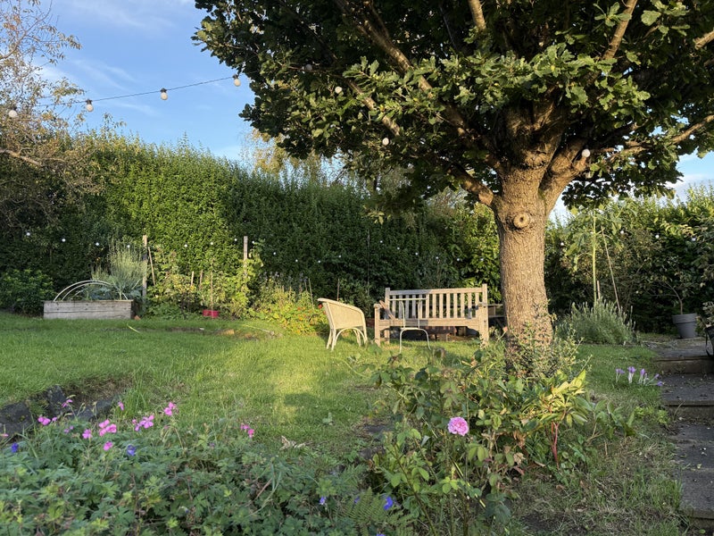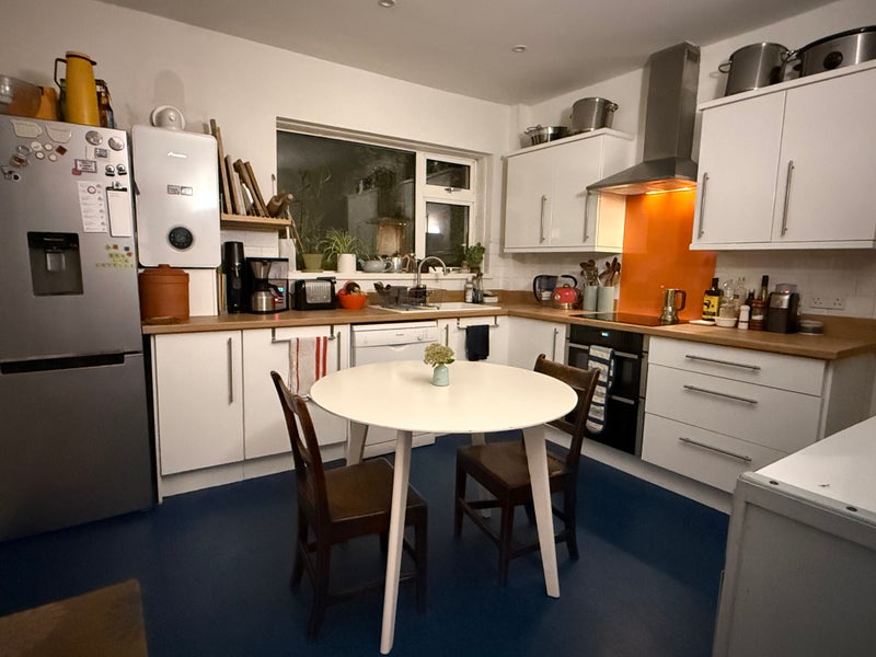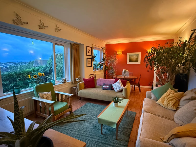 There is a large living/dining room, separate well-equipped kitchen and a shared shower room. The house is very warm, comfortable, and homely with lots of plants, pictures etc.