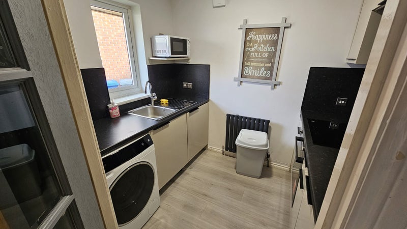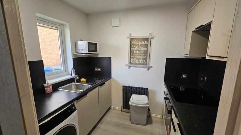 Stunning 1 bed flat, newly refurbished with seperate living room, seperate kitchen, large bathroom, Fully furnished with hi-end furnishings. Kitchen fully equipped . washing machine and dryer inclusive. Gas central heated. Large garden