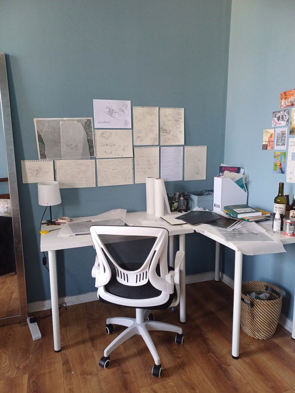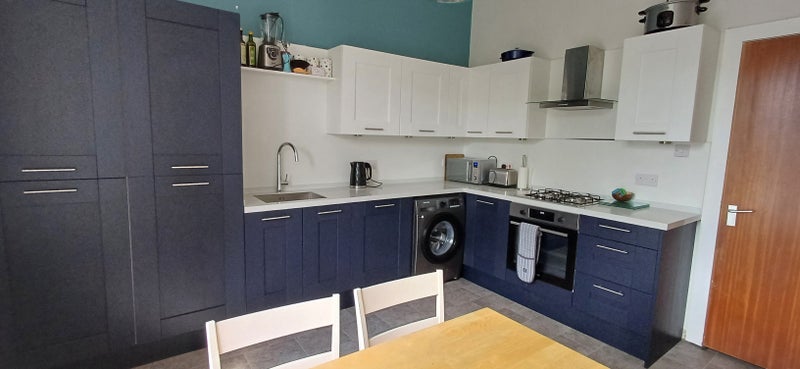 The bathroom and kitchen are shared between two (me and flatmate) with the kitchen newly installed last year. I use the living room in the flat as my work space and it is not shared.