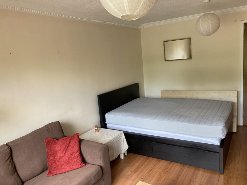 Spacious and bright double bedroom with sitting area and study desk.