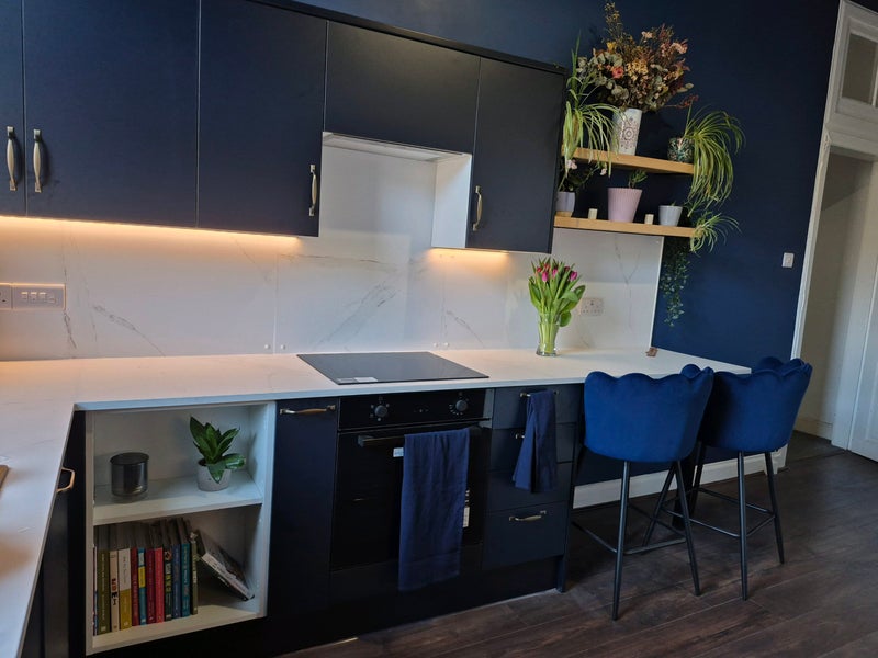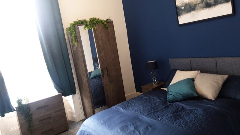 The flat is fully kitted with a TV, Netflix, Alexa, etc. Bathroom with bath and shower. Utility space with tumble dryer, dishwasher. Lots of storage space. The street and building isn't the best fair warning, but its an up and coming area 5min walk to Queens Park, Victoria Road, train station and regular buses mean easy access to the city centre. The general area is full of lovely bars, restaurants, gym and a range of supermarkets all within walking distance. Its really got everything you'd need on its doorstep.