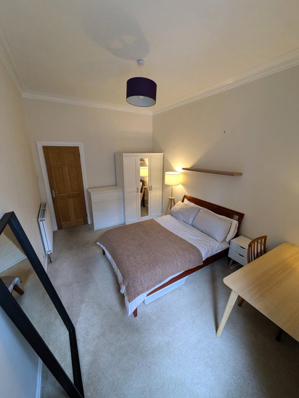 The room is large and furnished. Storage under bed as well as on top of and inside wardrobe.