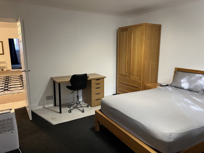 Furnished large double room available to rent (shower room, kitchen, living space and a seperate entrance to be shared with one other person). Close to bus stop and train station. Lots of parking space infront and at the back of the house. All bills included.