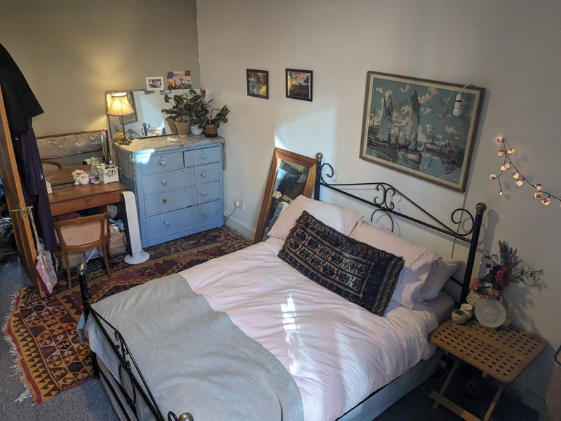 Spare bedroom is a good size, comes fully furnished. Large Living room with office corner and film projector for movie nights. Spacious kitchen with good oven. Nice bathroom, excellent water pressure from shower and bath tub. Private front garden and shared back garden. Excellent transport links, bus stop outside the flat and 2 train stations 10 minute walk away. Free parking is available on the street if you have a car, there is room inside the flat for your bike too.