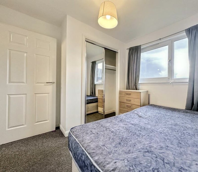 Located in Tollcross, Glasgow East End. Small double bedroom with own bathroom. The bedroom has a double bed, built in wardrobes and space for a small desk or set of drawers. Bathroom is a decent size with electric shower over bath, a sink and toilet. Shared living room and kitchen, both a decent size.