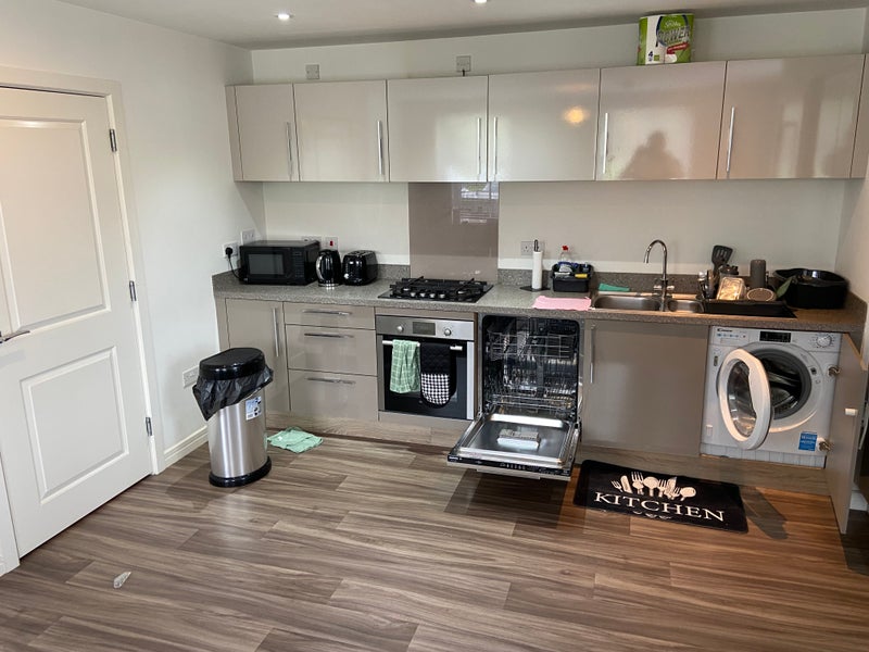 Spacious kitchen with a washer/dryer and dishwasher. Ideal for anyone who likes to cook or bake.