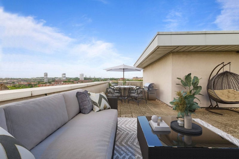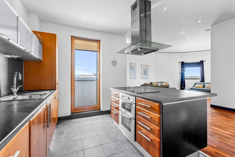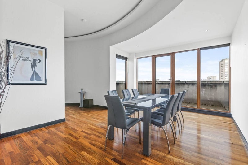 Very spacious 8th floor, 3 bedroom flat with two private roof top terraces, the biggest of which is one of the largest private terraces in Glasgow.