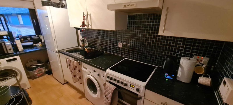 The flat features a large, bright living room with big windows that let in fantastic natural light throughout the day — ideal for relaxing, working from home, or socialising. The kitchen is fully equipped, including a tumble dryer, making day-to-day living convenient and stress-free.
