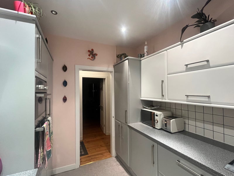 There’s a shared, spacious lounge (N. B I don’t have a TV), fully-fitted kitchen and a third spare room. The bathroom has an electric shower over the bath and will pretty much be your own as I have an en-suite.