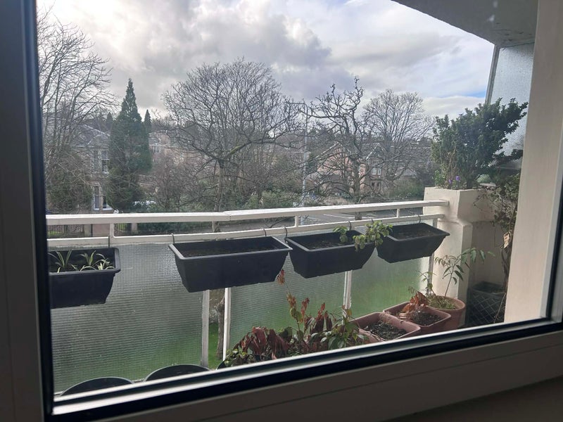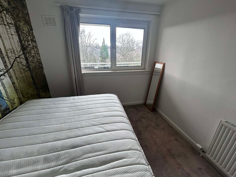 Room in 3 bed flat in Pollokshields. Big living room, decent sized kitchen & bathroom. Plus balcony & access to free parking and a garage. (The south-facing balcony & light sitting room will be lovely in Summer) Looking for someone clean and chilled but sociable!