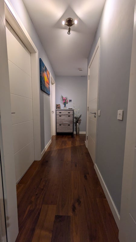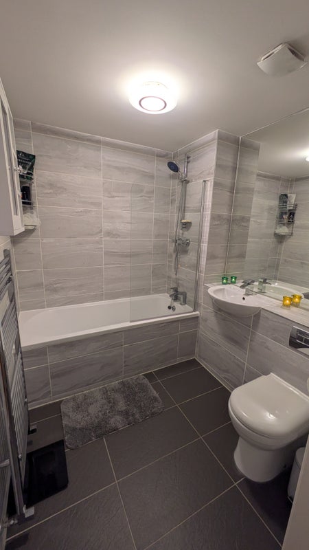 The flat is a fully furnished modern space decorated in a clean contemporary style. The living room, kitchen/dining area and main bathroom are shared spaces, there is also an en suite bathroom to the master bedroom which tenants would have access to as well. The room comes with plenty of built in storage and is finished in nice neutral tones.