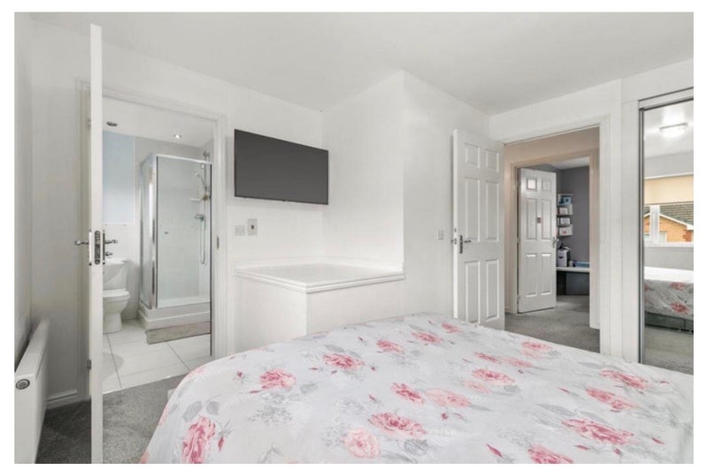 The property comprises a bright and spacious living room, modern fitted kitchen with ample cupboard space, three good-sized bedrooms, and two bathrooms. The master bedroom benefits from an en-suite.