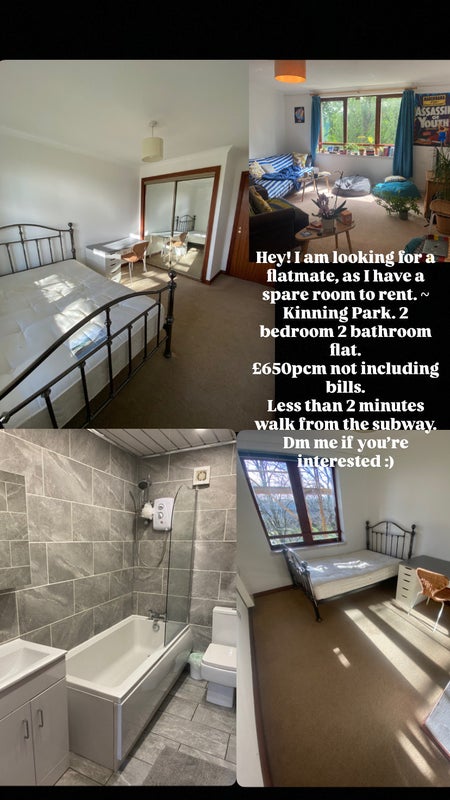 A double room to rent in Kinning park. 1 minute from the subway. Room has own separate bathroom. Decent sized wardrobe and desk in room. £650 a month not including bills.