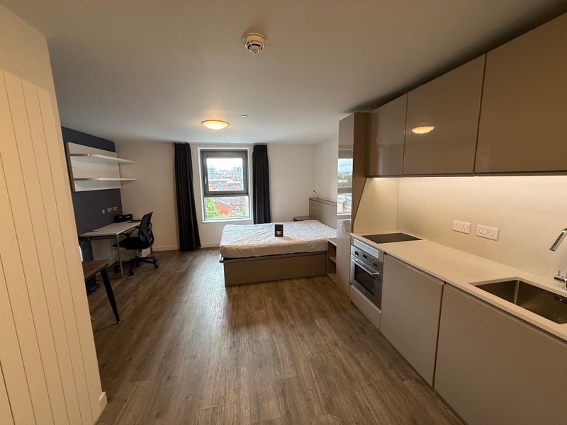 Vita’s largest room is 25m², a Deluxe Studio on the 4th floor, with independent heating (can be left on 24/7; very warm and silent), stunning views from the window and a quiet location away from the railway tracks. The mattress (king size) has just been replaced following the latest official room inspection. The internet is very fast, and the room features a TV, plenty of storage space, two chairs and three tables. Complimentary weekday breakfast, room cleaning every other week, and free laundry service twice a week. On-call maintenance available. There’s a huge Lidl supermarket downstairs and a massive Morrison’s opposite; Marks & Spencer, McDonald’s, Boots and more are just a ten-minute walk away – extremely convenient.