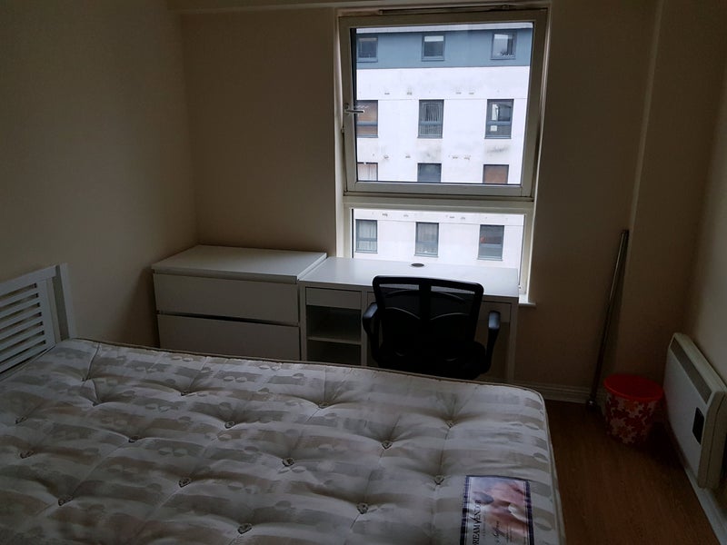 A large, fully furnished double room is available in a clean and modern two-bedroom flat in Tradeston, just 10 minutes’ walk from the city centre.