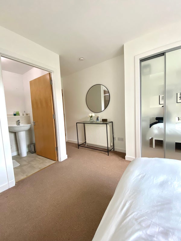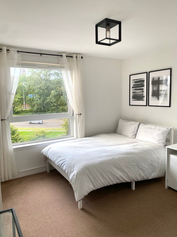 A spacious, fully furnished en-suite double room available in a modern 2-bed apartment in Glasgow City. The room comes with a double bed, fitted wardrobe, desk, chair, wall mirror and a separate bathroom with a shower. The flat is clean, quiet, and well maintained. It is a really cosy and relaxed place to call home. Electricity and Gas are included however Wi-Fi, council tax need to be covered by you separately. There’s also secure onsite parking, accessed with a fob if you’ve got a car.