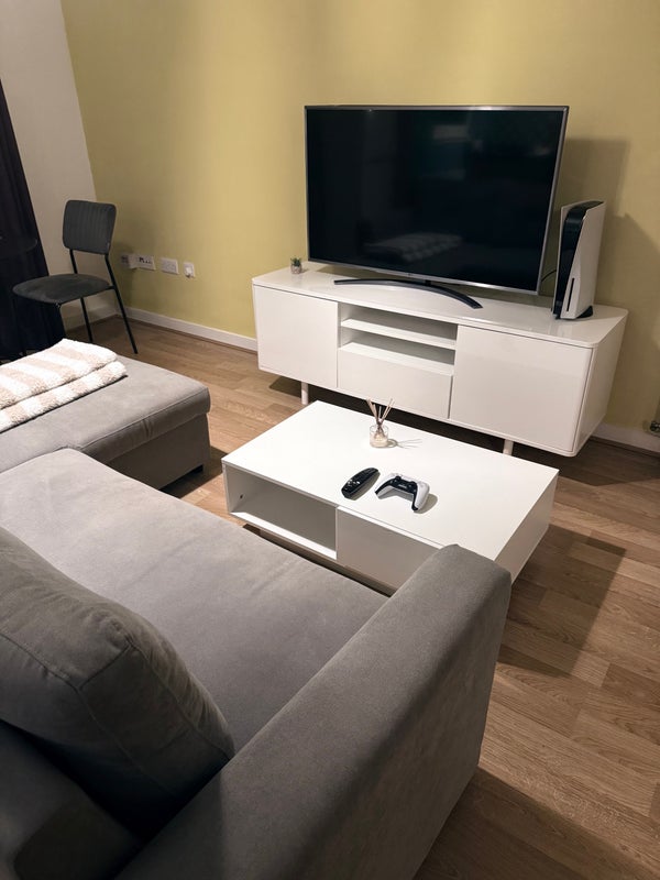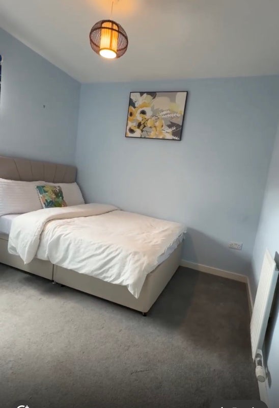 A furnished room with a private bathroom is available in a 2-bedroom and 2-bathroom apartment in the Glasgow City centre environ for immediate move-in.