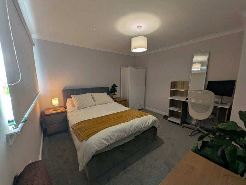 The room includes a wardrobe, chest of drawers, bedside tables and an ottoman bed. A desk can also be provided if needed. You’re welcome to make the room your own and add personal touches or artwork 😊