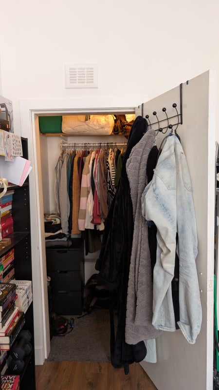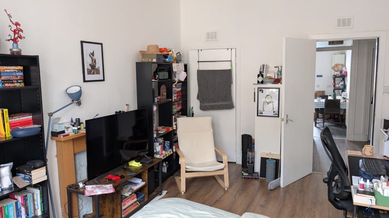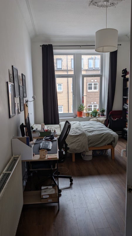 - Comes with a double bed, a chest of drawers (white), and walk-in wardrobe. The shelves, table and chair you see in the pictures belong to my flatmate. You will have a lot of space.