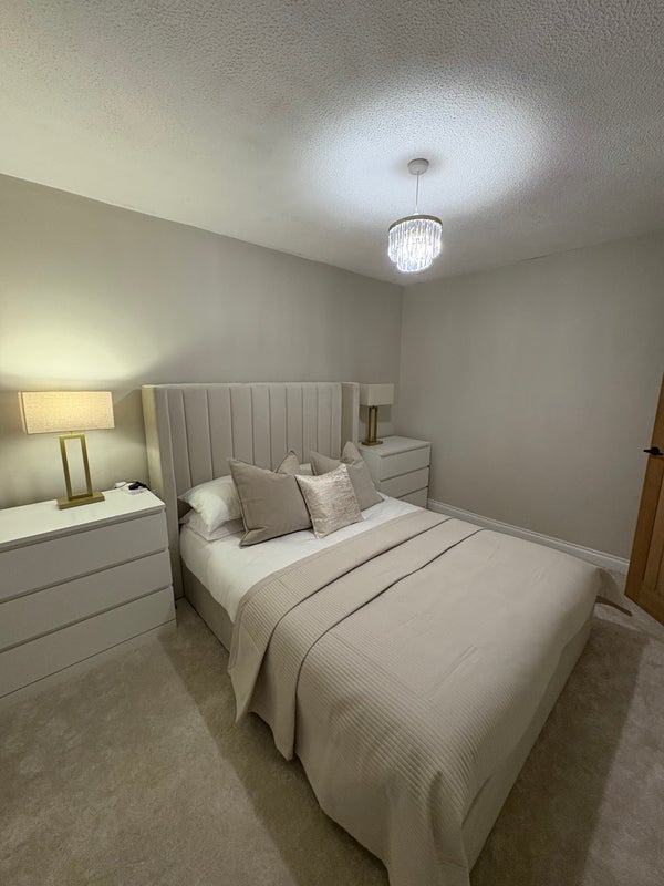 Room has a kingsize bed with storage under the bed and also two chests of drawers. It is within a 2 bed flat in Pollokshaws/Thornliebank area and only a short distance to Shawlands. 10 mins walk to either Thornliebank or Polokshaws West train stations and only a 10 minute train journey to Glasgow Central. There is free parking outside. Bills are included. I own the flat however I do not often stay there as I stay with my boyfriend a lot so you would have the flat to yourself majority of the time. Looking for someone who is respectful and clean. I look forward to hearing from you if you are interested.