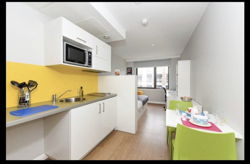 Tenancy takeover from student accommodation, bronze studio in Merchant city- available from March, 2024. The studio is on the end of the building and is spacious and well maintained and is in the heart of the city. Access to the gym, study room and pool is included in the price. All bills are included in the rent. Rent is 230 per week, and a deposit of £250 will be held and refunded at a later date . The studio is a 2minute walk to Strathclyde university and a 5 minute walk to Glasgow City college. High street station and supermarkets such as Aldi, Lidl, and Morrison's are in close walkable distance.