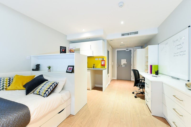 You’ll be in a prime location close to Strathclyde university, and a subway ride from University of Glasgow. You can enjoy the peace and freedom of independent living in your own fully-equipped studio flat with self-contained kitchen and bathroom. Study independently or with friends in social communal lounge and outdoor courtyard, for exclusive use by Merchant Studios residents. The property also has on-site gym for full 24/7 access. Laundry room.