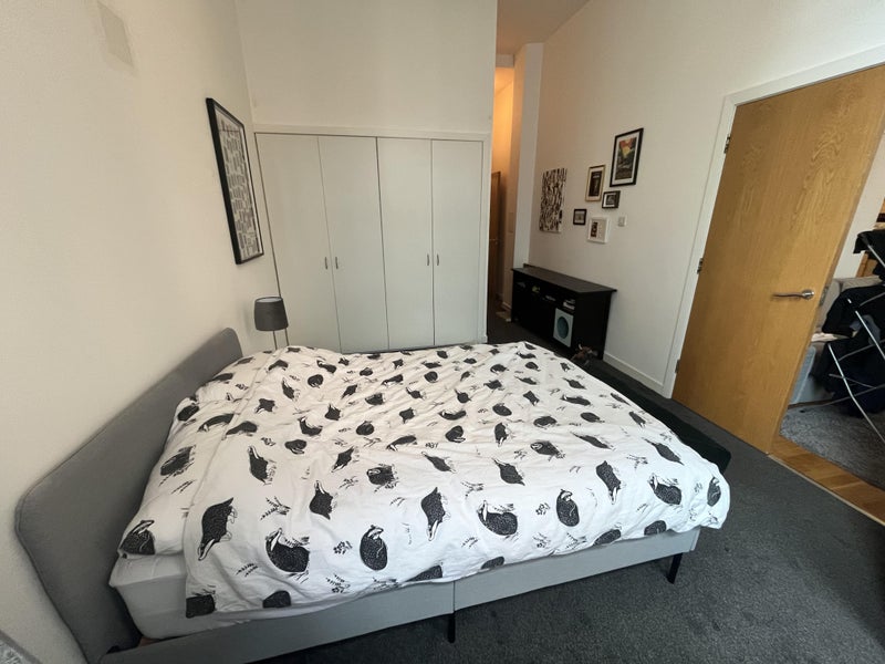 Room - lovely large double room with en suite toilet and shower. Built in wardrobe, mirror, chest of drawers, etc. Extra furniture/ bedding needs can be discussed.