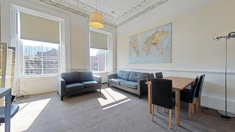I’m looking for a student to take over my room in a 5-bedroom flat on Bath Street in Glasgow city centre. The flat is on the top floor of a secure entry building and is in a great central location, within walking distance of Strathclyde University, Glasgow Caledonian University, the Glasgow School of Art, and the Royal Conservatoire of Scotland.