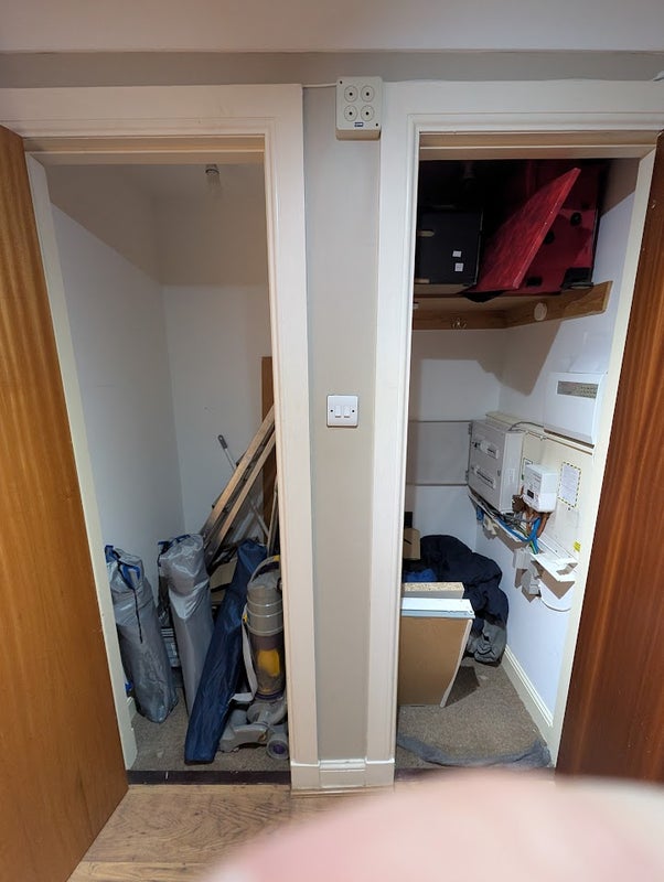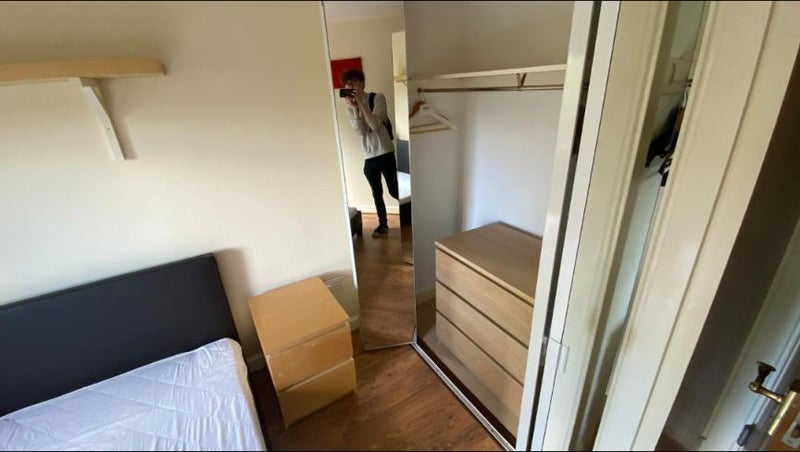A spacious flat with two bedrooms, a kitchen, a living room, a bathroom, two cupboards, and a boiler cupboard. It is all-electric (no gas) and is furnished with stuff like sofas, a washing machine, a couple tables, kitchen utensils, and cleaning equipment. I also have a TV.
