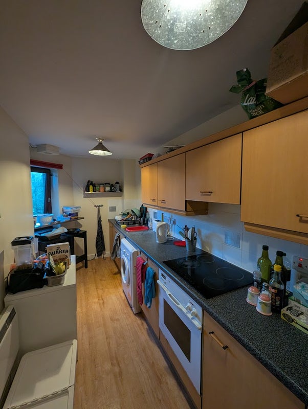 This flat is on the second floor of a private block on Parsonage Square, just off of High Street. It has doorstep access to Glasgow City Centre and is especially good for areas like Merchant City, Glasgow Green, and the Barras. For amenities, it is around the corner to an Aldi, Tesco, and Morrisons and the area boasts many other different shops, food places, and pubs. It is a 20 minute walk from both main Glasgow stations and around the corner to High Street Station. Noise wise it is much quieter than the main streets but is not without noise from passing cars and people.
