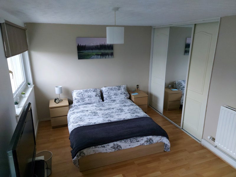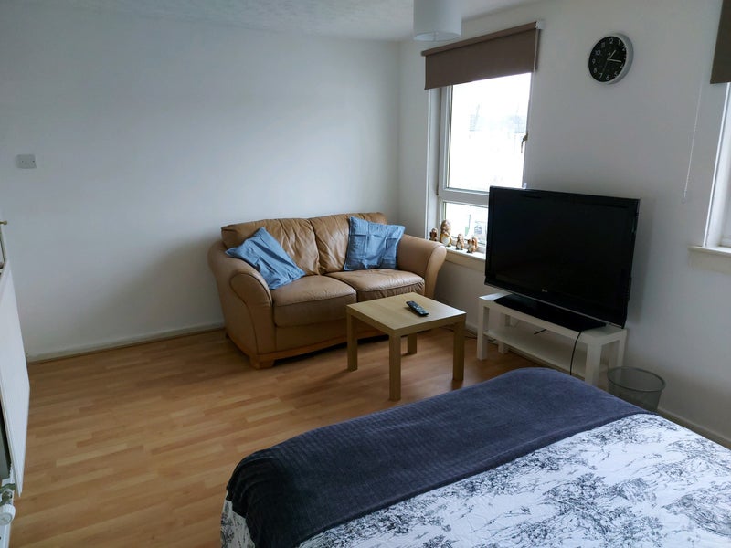 A bright double room is available in a welcoming two-bedroom flat. The room comes fully furnished with a large wardrobe, sofa, desk and chair, and a TV - perfect for both studying and relaxing.