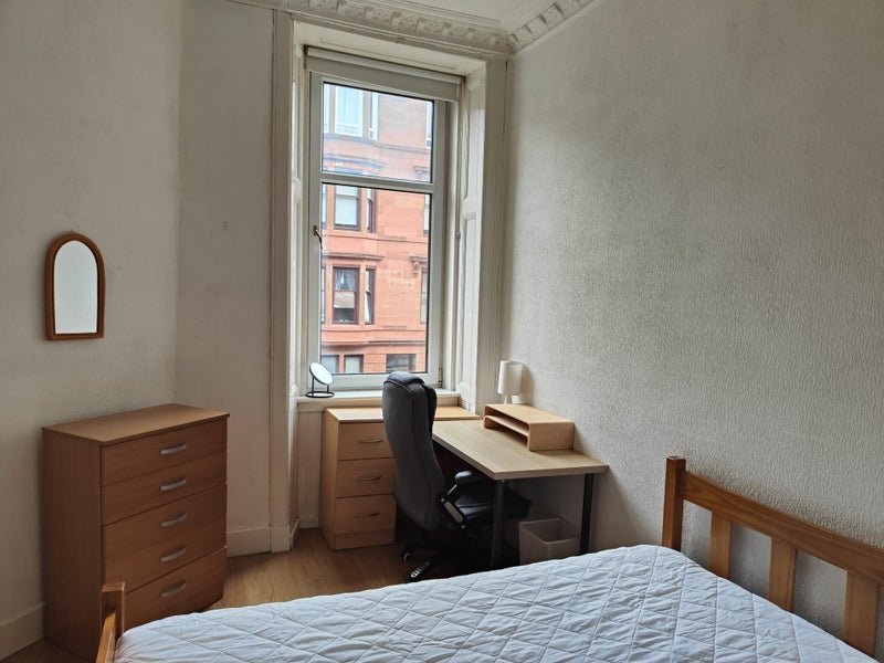 Bright traditional two double bed flat with gas central heating, double glazing and secure door entry. Separate lounge, kitchen and lounge. Kitchen includes cooker, fridge, freezer, microwave and toaster. The flat is close to Glasgow University and Kelvinbridge Underground.