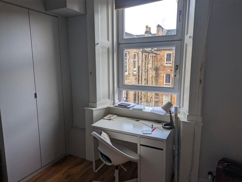 All the rooms are large and bright. It is a top flat facing South, with all the sun that we can get in this city ;)