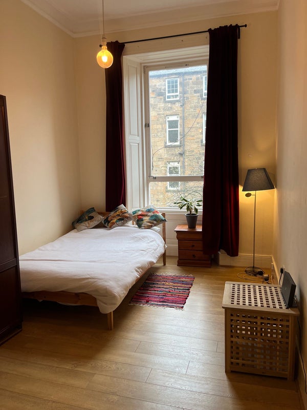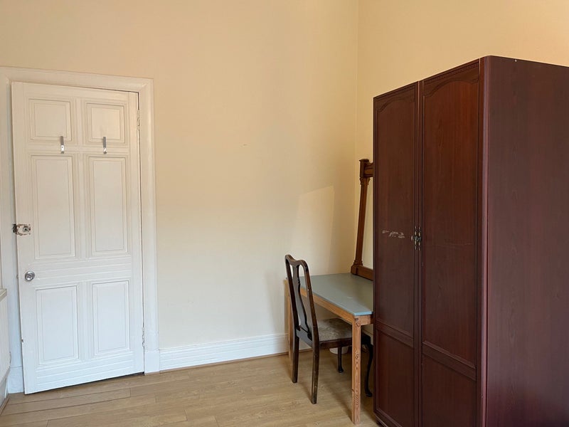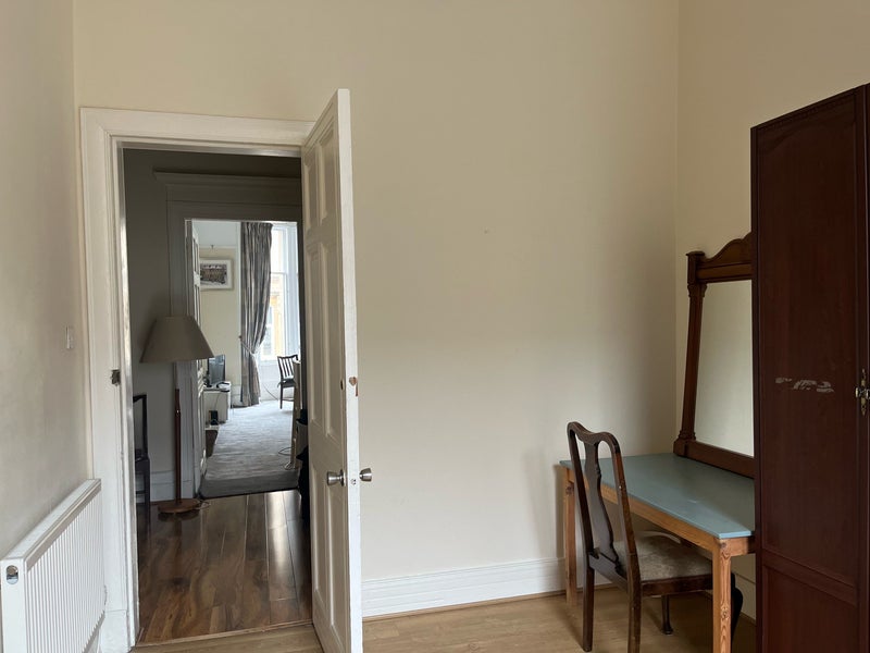 Furnished double room in spacious West End flat, shared with two friendly middle-aged professionals. Quiet, clean home with high ceilings, wooden floors, large kitchen, and shared bathroom.