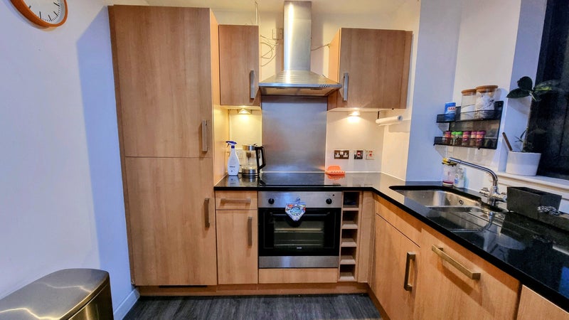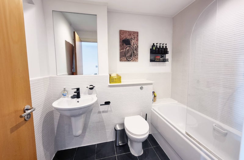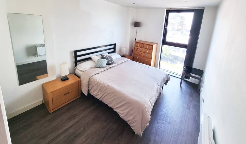 The flexible accommodation opens up to a spacious hallway which offers contemporary hard flooring throughout and extends to the living room, two double bedrooms, a fully fitted kitchen and 2 bathrooms. This flat also benefits from gated residence parking and a Nuffield Gym just a minutes walk away. The kitchen is well equipped with a built-in oven, electric glass hob, extractor hood, fridge freezer, microwave, dishwasher and washer dryer plus basic utensils and crockery. Both bedrooms have a wardrobe fitted with sliding doors, a double bed and side tables with bedside lamp. One bedroom includes an ensuite bathroom. Both bathrooms are fully tiled with a basin and WC. The ensuite includes an enclosed shower while the large bathroom includes a shower over a bath. Both showers include a shower mixer set, multifunctional hand shower with an overhead shower. The lounge offers a sitting and a dining space. This apartment is powered by electricity throughout (no gas supply) and benefits from modern double glazed windows throughout. The property is offered as fully furnished, you can walk straight in with your suitcase.
