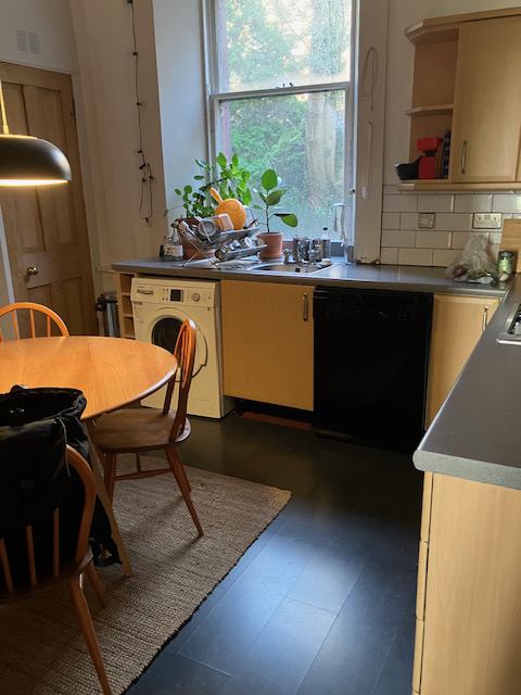 The flat, located an 8 minute walk from Kelvinbridge Station, is officially a 1 bedroom flat, but both main rooms are currently being used as bedrooms with the generous dining kitchen and recently redecorated bathroom functioning as communal areas. The flat has a bohemian vibe and is a little rough around the edges, yet not in a bad state. It is situated on a residential street with open views towards Park Circus and the university.