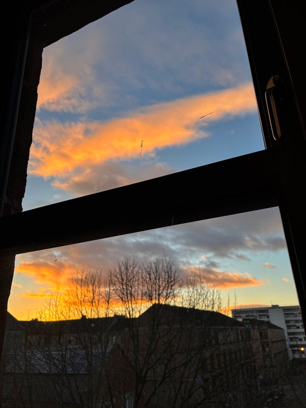The room is large and super bright, with a big window that gets loads of sunlight all day. You can see beautiful sunsets and the sky changing colours in the evenings – it really lifts your mood. There’s also a tree outside the window, no buildings blocking the view, and it’s surprisingly quiet, so you can keep the window open all the time.