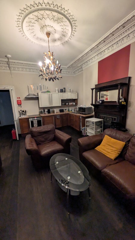 A bright and spacious room is available in a luxury 4-bedroom flat located in the heart of Glasgow’s West End. This traditional tenement property features high ceilings, original Victorian cornicing, and massive bay windows overlooking the iconic Great Western Road.