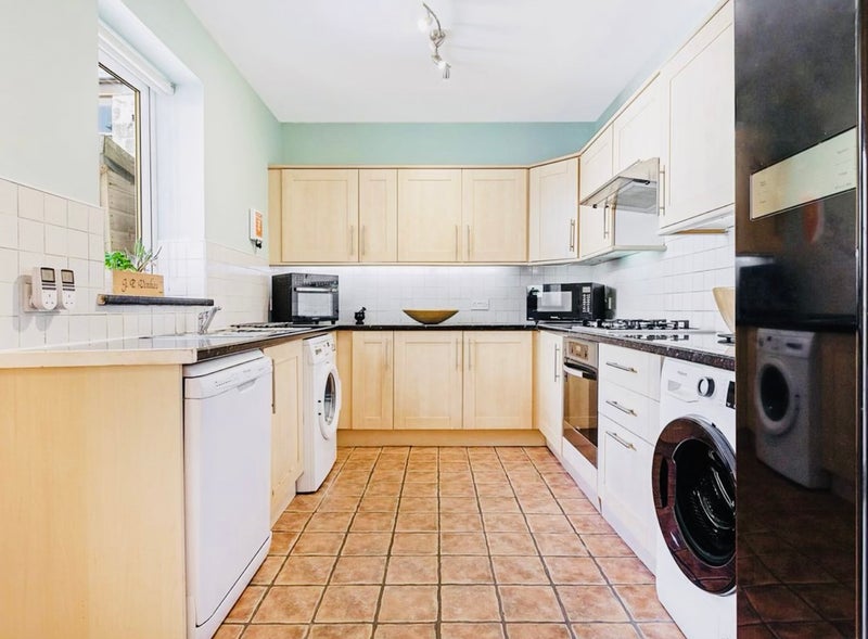 The house is spacious and well-equipped: a large shared kitchen with two hobs, a bright lounge and dining area, three bathrooms, and a private garden.