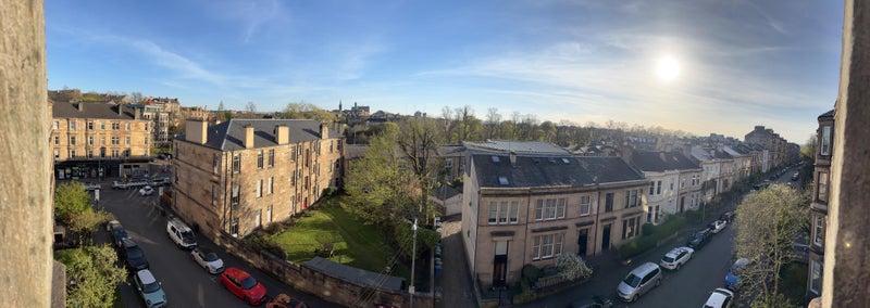 Furnished double room available in a very spacious and bright top floor tenement flat. The flat has two bedrooms and a shared hallway, kitchen, living room and bathroom. There is an additional close shared between this and the adjacent flat. The view is fantastic and with so many windows, the flat gets nice and toasty when the sun comes out. It is a ten minute walk from Maryhill tesco, and less than that to Byres/Great Western Road. The North Kelvin meadow is a lovely peaceful wee green area on the same street.