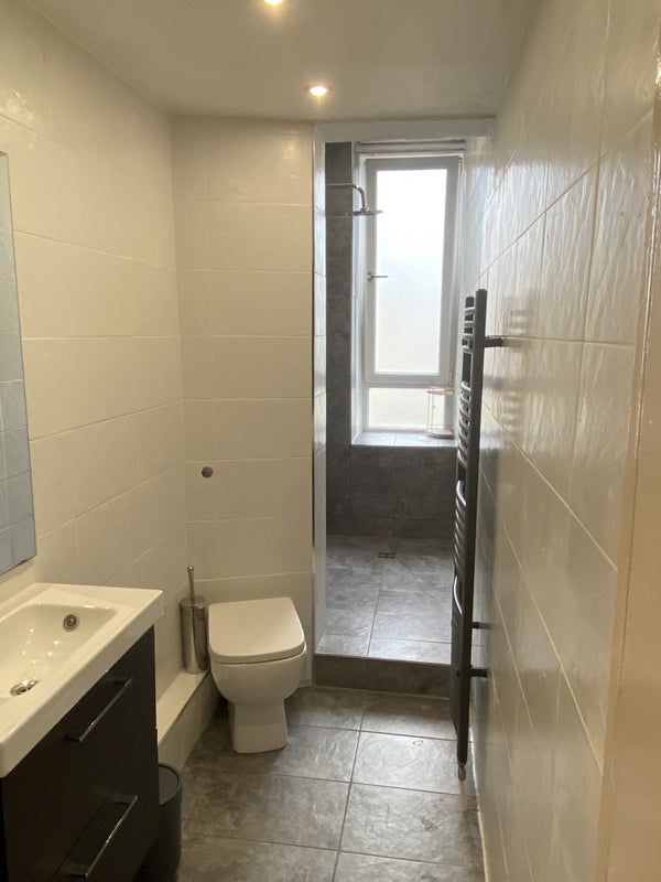 The modern w/c leads to a generously sized walk-in shower.