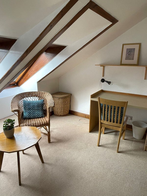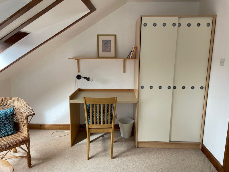 Large, bright, double room fully furnished with king size bed, wardrobe, drawers, and work space. The house is on four levels and the bedroom is at the top, so it’s a quiet peaceful space that’s totally private. It is located on a quiet and well-established residential street with on street parking available and no ‘through road’ traffic.
