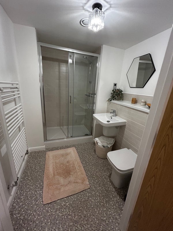 Double room with own bathroom available in Glasgow Southside, new build flat , 2mins walk from bus and train station, 5mins by train to Glasgow Central. Prime location for local shops, cafes, bars and restaurants.