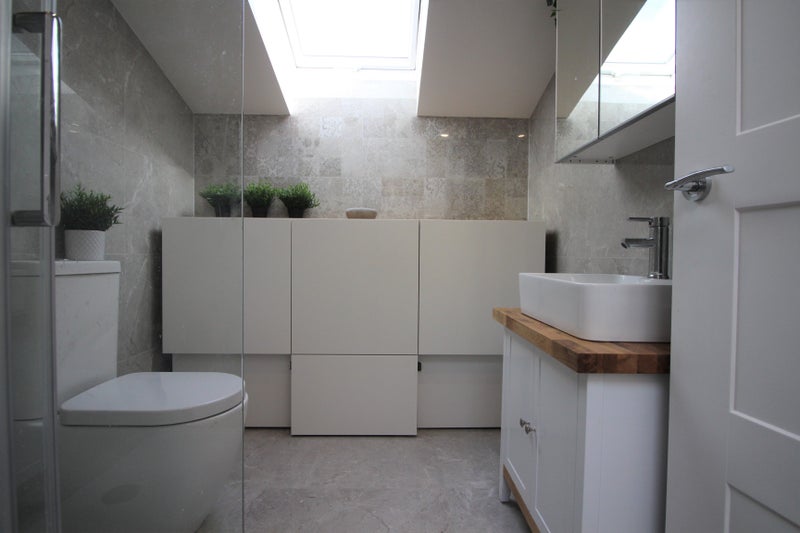 A beautifully tiled 3-piece bathroom, shared between only three tenants.