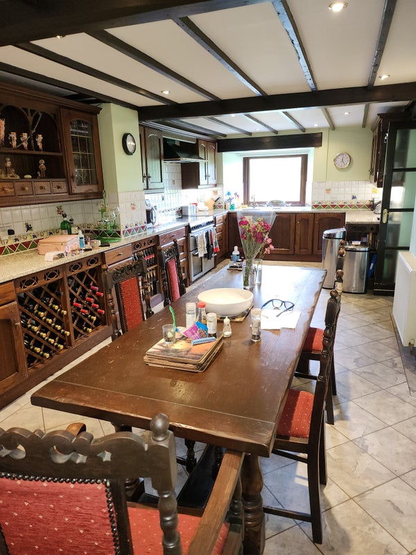 Four bed.; one available. Bathroom shared with one other person. Downstairs Toilet & Utility room. Large Kitchen Diner.