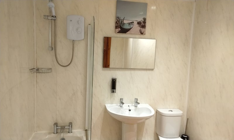 Kitchen has hob, microwave, fridge/freezer, kettle, crockery etc.