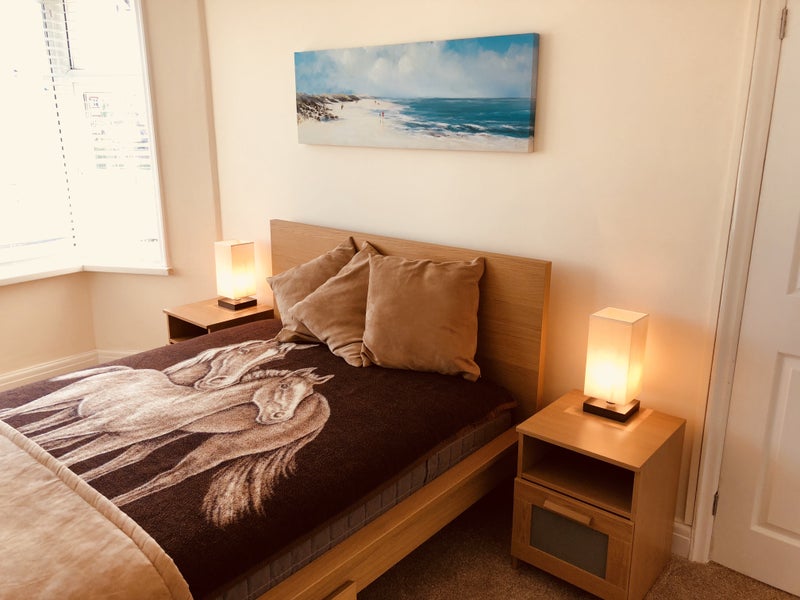 The home has been completely refurbished, top to bottom & front to back. It has a new roof, new landscaped gardens & inside comprises brand new kitchen & bathroom, downstairs loo, new flooring to kitchen & dining area & luxury carpet throughout. There is a large shared living room furnished with the finest chestnut leather sofa & club armchair, a 43-inch SMART TV with full access to the usual terrestrial channels & subscription apps such as YouTube & Netflix .. and a traditional Adam fireplace.