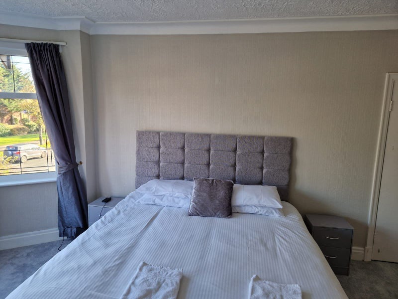 Our spacious one super king room with queen size bed and a large fitted wardrobe one stander double room and one king room with king size bed with sharing kitchen, common area and free parking.