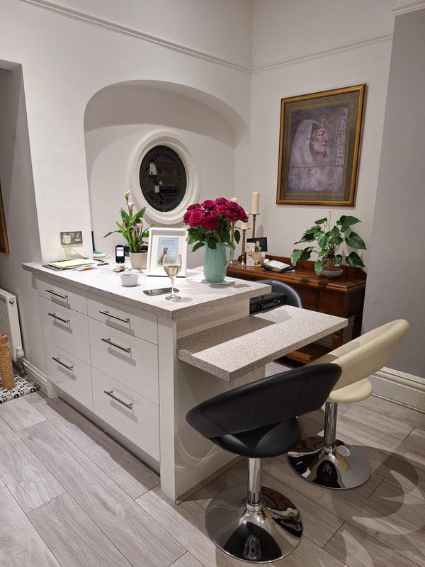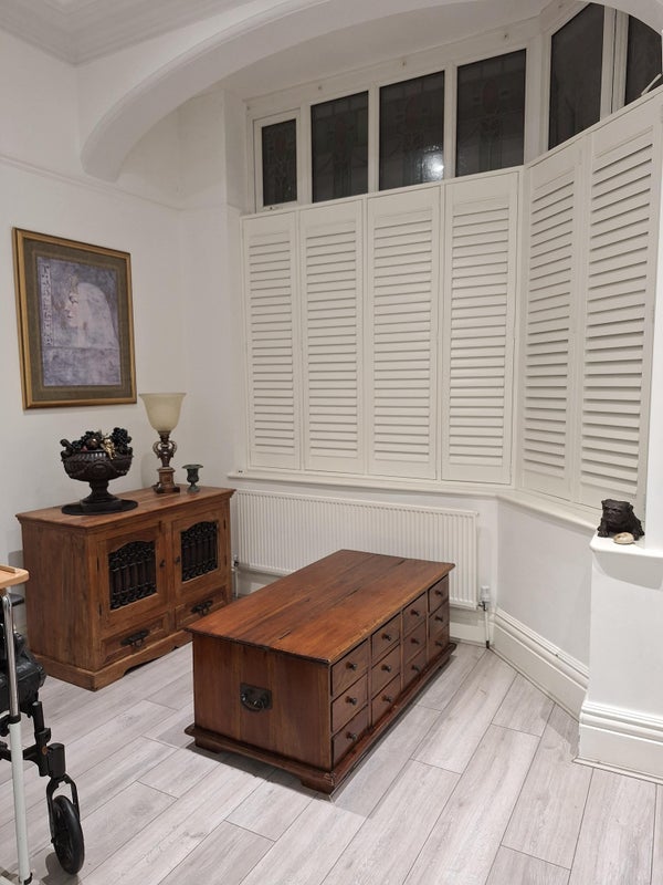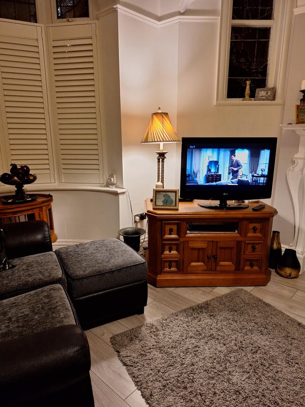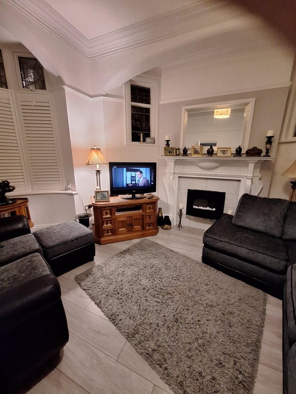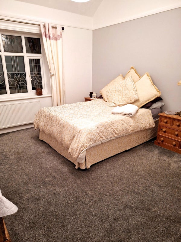 King Size fully furnished room ..TV. Broad band .linen .modern bathroom with walk in shower. .Fully fitted modern kitchen Utility room (washing machine) Forecourt Car parking. 10 mins walk Victoria Hospital and to centre.. Garden front secure back courtyard.