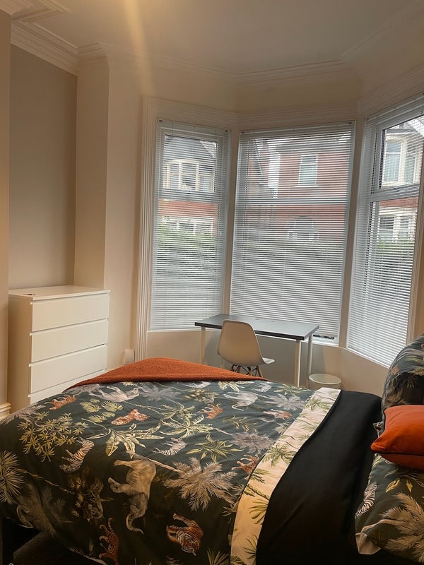 We have a mid sized double room coming at this fab property just off Whitegate Drive, with easy access to town, Stanley Park and around 25 mins walk to the hospital. We have then residents parking permit available here for £15.